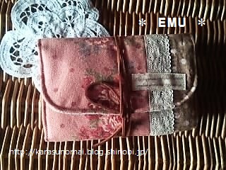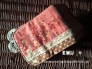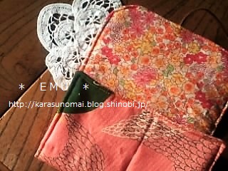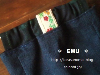 ポケット部分は表のピンクに近い花柄を使用。