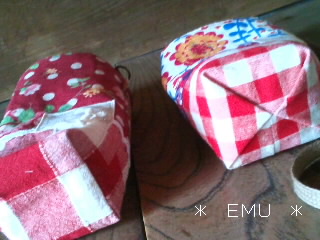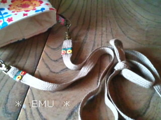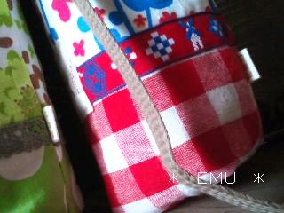 赤には花柄の色に近いチロリアンテープを縫いつけました。