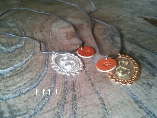 写真左のイヤリングはダイソーのボタンとビーズ、
