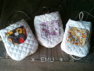 ぺったんこポシェット三個です。