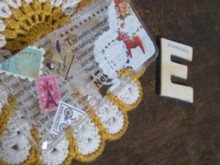これまたレースペーパーとシールでコラージュ……。